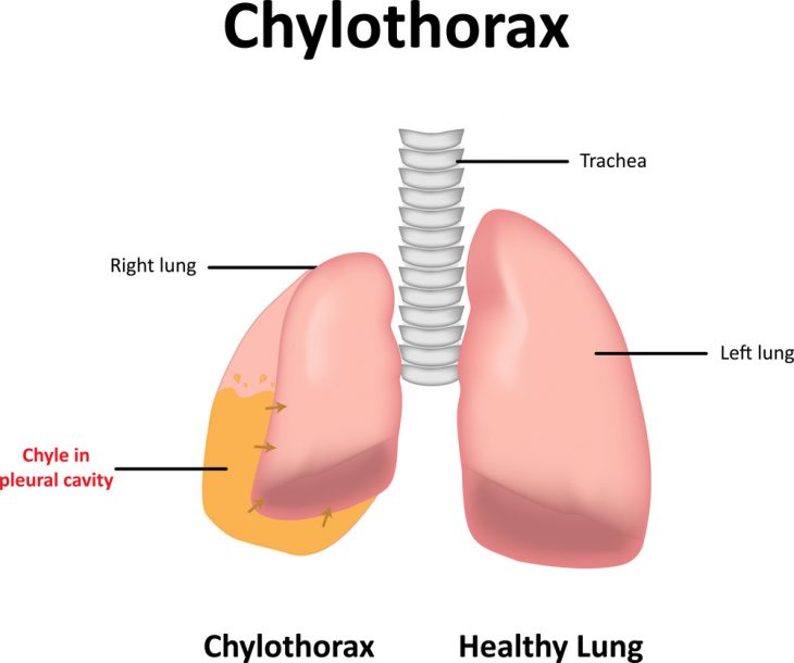 - хилотораксе (скоплении лимфы),